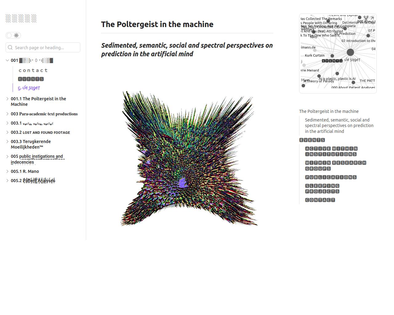 Works in the field(s) of: Art theory, Audio, Audiovisual, Music, Sound art, Teaching, Writing, Philosophy, Language-modulation, negintelligibility