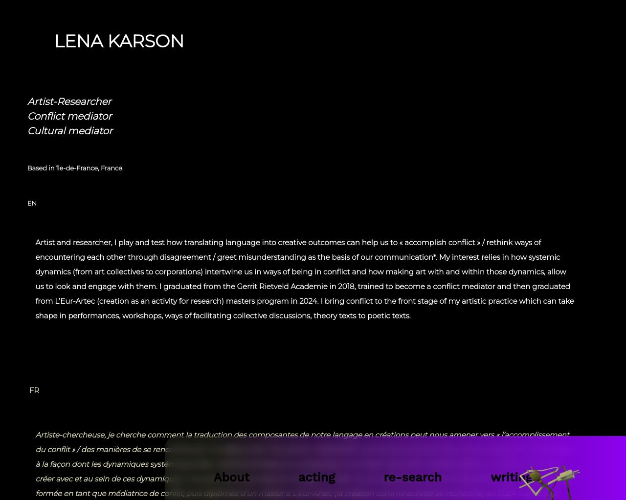 Works in the field(s) of: Artistic Research, Conflict mediation