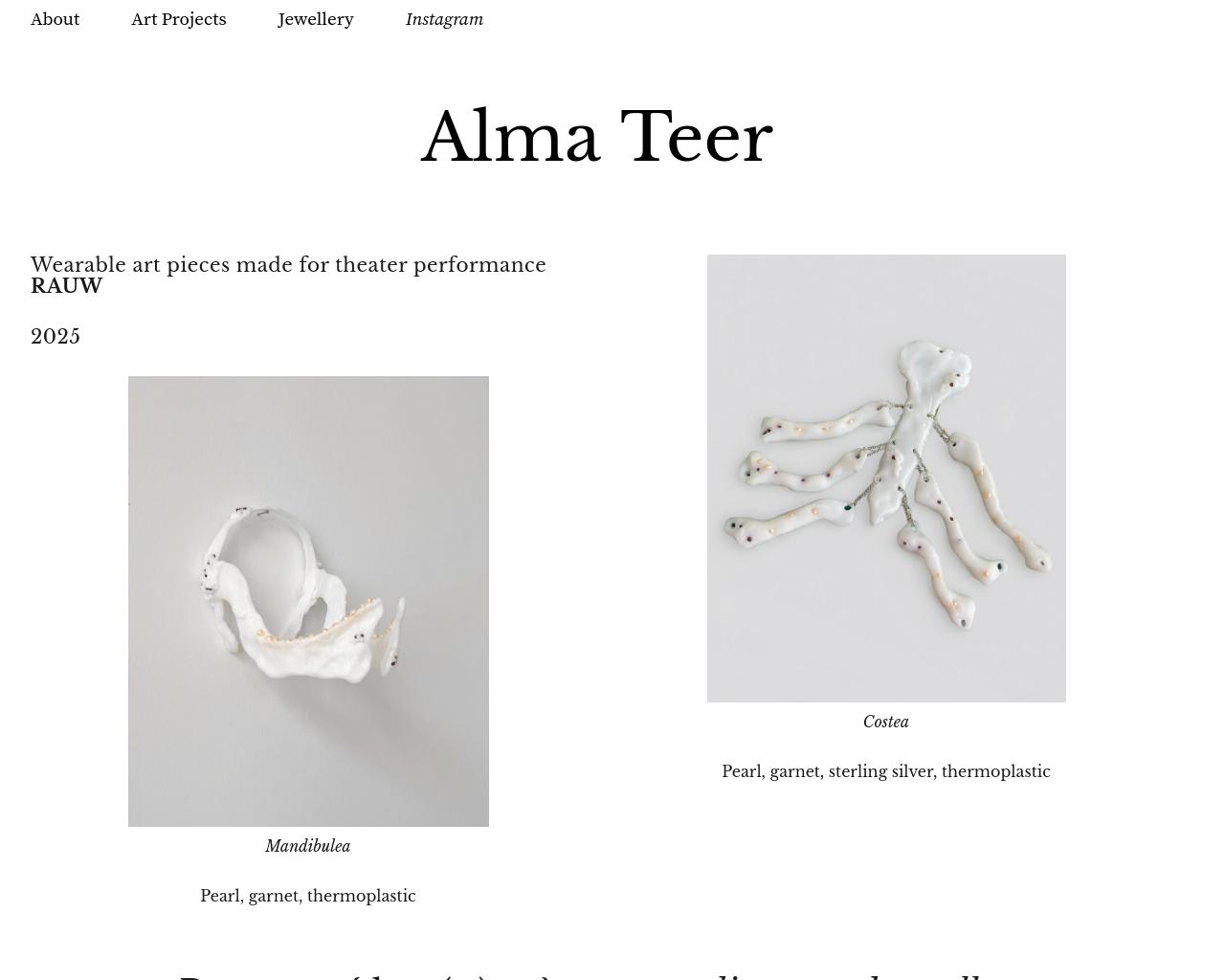 Works in the field(s) of: Installation art, Jewellery design, Text based, Textile, Artistic Research, Conceptual art/design, Crafts, Weaving
